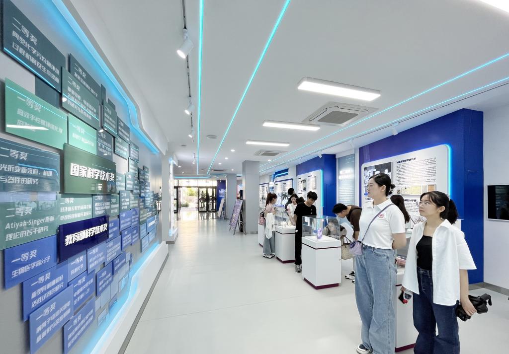 在天开高教科创园,党员们认真观看了“南开科技力量”展览。通过展出的南开大学服务国家重大发展战略的部分科技成果和实物,党员们深入了解了南开大学从1919年建校至今一百多年间为国家发展、科技进步、人民幸福所作出的不懈努力。期间,党员们还就参观过程发现的与个人研究方向相关的成果进行热烈讨论,交流心得感悟。