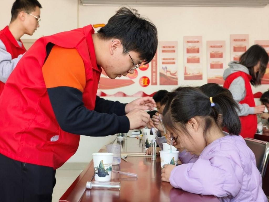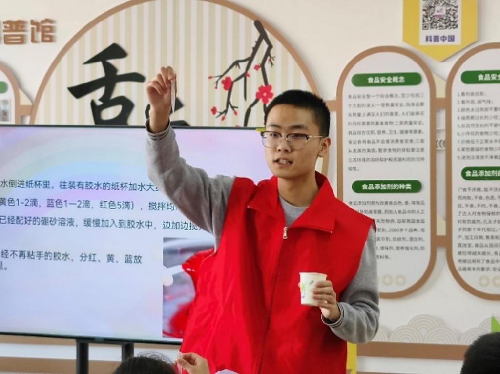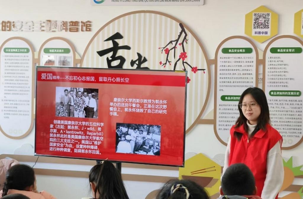 学生党员志愿者为社区小朋友们带来了一场趣味科普课。在课堂中,志愿者们围绕科学家精神内涵,讲述李四光、侯德榜、钱学森,袁隆平、屠呦呦等科学家的故事,鼓励学生从小树立热爱祖国、追求卓越、勇攀高峰的信念。