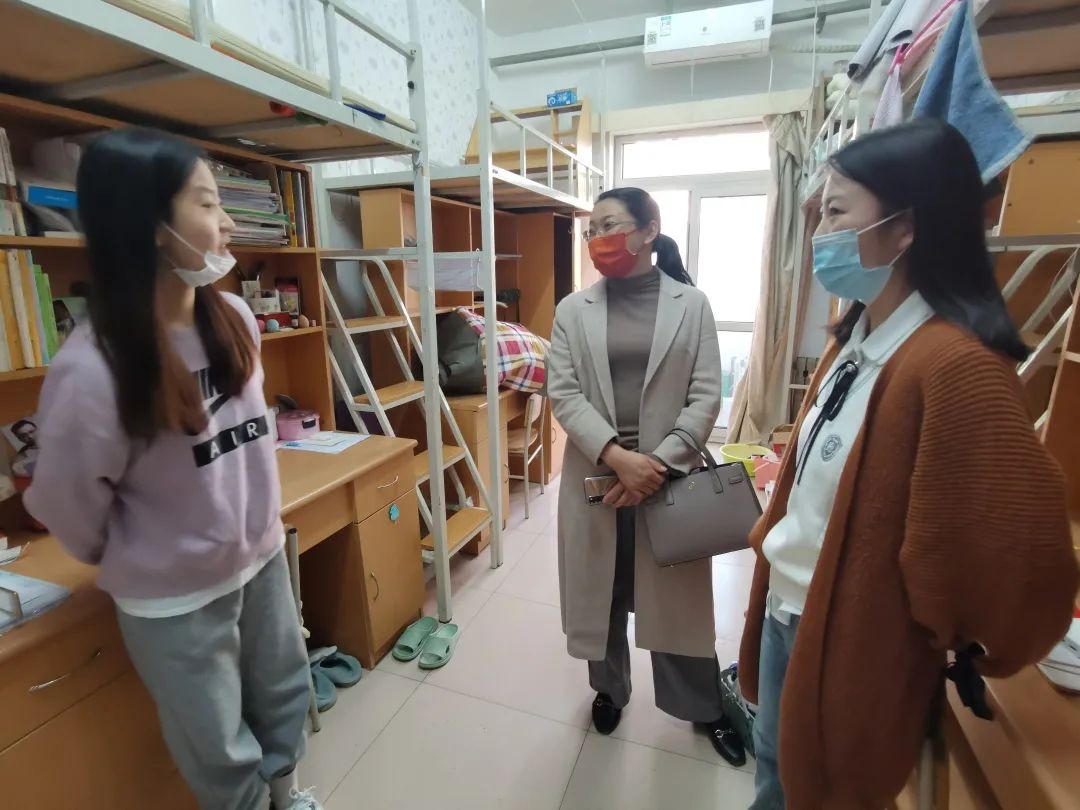 2022年3月7日,beat365亚洲版官网第一批返校学生陆续回校,学院党委书记张梅老师、党委副书记赵晓艳老师、副院长吴景波老师、副院长王守宇老师以及学工办辅导员和班主任老师走进学生宿舍进行走访。