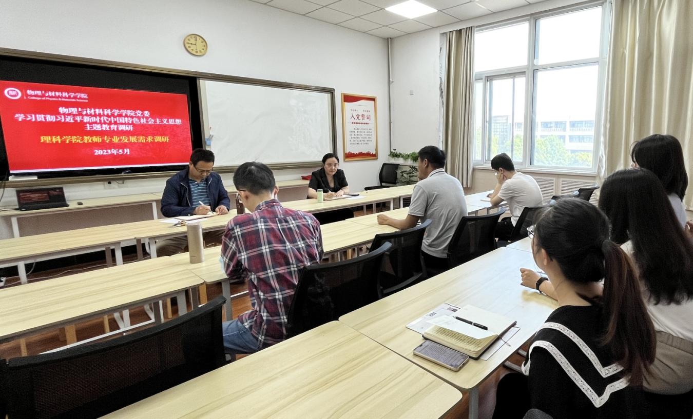近日,beat365亚洲版官网党委开展主题教育调研活动暨本学期青教青研工作坊首讲。学院党委书记张梅,党委副书记、院长黄美东就理科学院教师专业发展需求开展座谈交流,10余名青年教师参加。