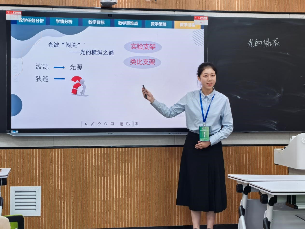 beat365亚洲版官网一直以全国物理师范生教学技能展评活动作为培育物理师范生核心竞争力的重要抓手,连续15年带领学生在展评活动中摘金夺银,展现了beat365官网物理青年的良好精神风貌。活动前,指导教师从教学设计、说课、讲课、教具制作等方面对选手们进行了为期15天的强化训练。最终,选手们凭借扎实的课堂教学基本功和富有创新性的实验设计,从众多参赛者中脱颖而出,为学校赢得了荣誉。