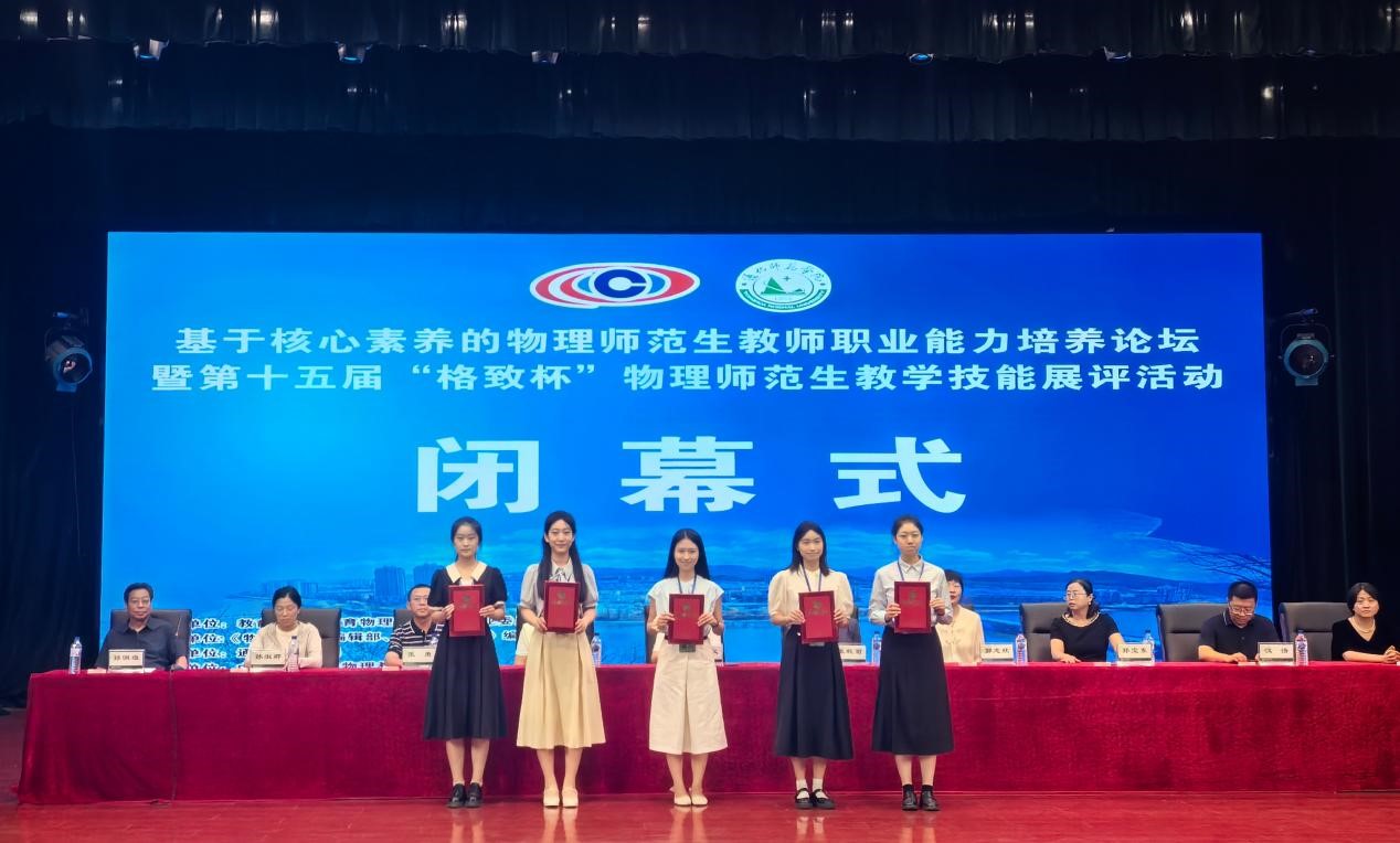 7月19日至21日,基于核心素养的物理师范生教师职业能力培养论坛暨第十五届“格致杯”全国物理师范生教学技能展评活动在通化师范学院举行。经过紧张激烈的比赛,beat365官网beat365亚洲版官网5名选手表现出色,成绩喜人。在教学技能交流展示活动中,施芷妍、林慧玲、高可莹、陈雨馨、刘蕊荣获一等奖;其中,施芷妍和林慧玲获推参与闭幕式优质课展示;在创新实验设计与自制教具展示活动中,施芷妍、林慧玲荣获一等奖,高可莹、陈雨馨、刘蕊荣获二等奖;beat365亚洲版官网荣获“优秀组织奖”和“特殊贡献奖”,创造参加该项活动最好成绩。