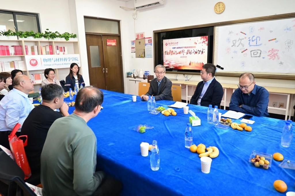 班会上,张伟书记代表学院致辞,他介绍了学院的发展历程,并表示深感校友们心系母校的浓厚情怀,诚挚邀请广大校友积极为学院人才培养、学科建设、科学研究等提出宝贵的意见和建议,愿与校友携手践行物理学科所赋予的严谨与理性,传承科学家精神、弘扬教育家精神,为建设教育强国建设贡献物理力量。同时,向返校校友赠予了精心准备的限定帆布包、纪念马克杯和beat365亚洲版官网师生自编自演的科学家精神舞台剧《邓稼先》光盘。