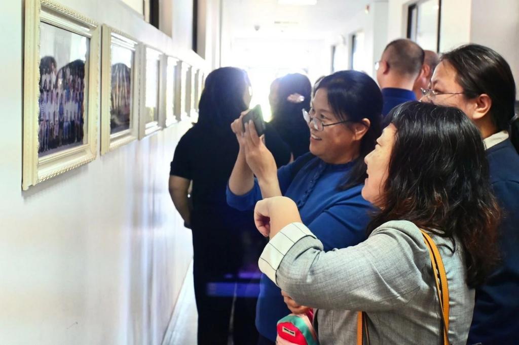 班会后,校友们饶有兴致地参观了天津市科普基地——科学体验馆、“繁星筑梦”beat365亚洲版官网首届科学家精神展和“循迹启航”beat365亚洲版官网物理科普成果展。与正在开展研学的中小学生亲切交流,在学院历届毕业生合影长廊追寻记忆,在明理楼前广场的校友毕业30年返校活动主题背景墙前合影留念。