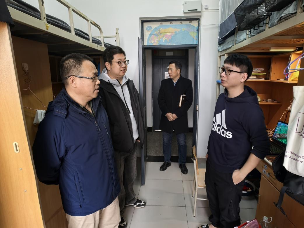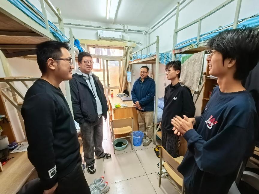 在走访中,学院领导与同学们亲切交流,询问同学们的生活起居和学习情况,向同学们宣传消防安全知识,对大功率电器、明火、管制刀具等宿舍安全隐患逐一排查。在3号楼本科生宿舍,学院党委书记张伟叮嘱同学们注意冬季用电安全,强调公寓是同学们在校生活、学习的重要场所,宿舍消防安全是大学生成长发展的基础保障,日常生活切勿大意,鼓励大家合理安排时间,劳逸结合,积极参与体育锻炼,养成良好的生活习惯。