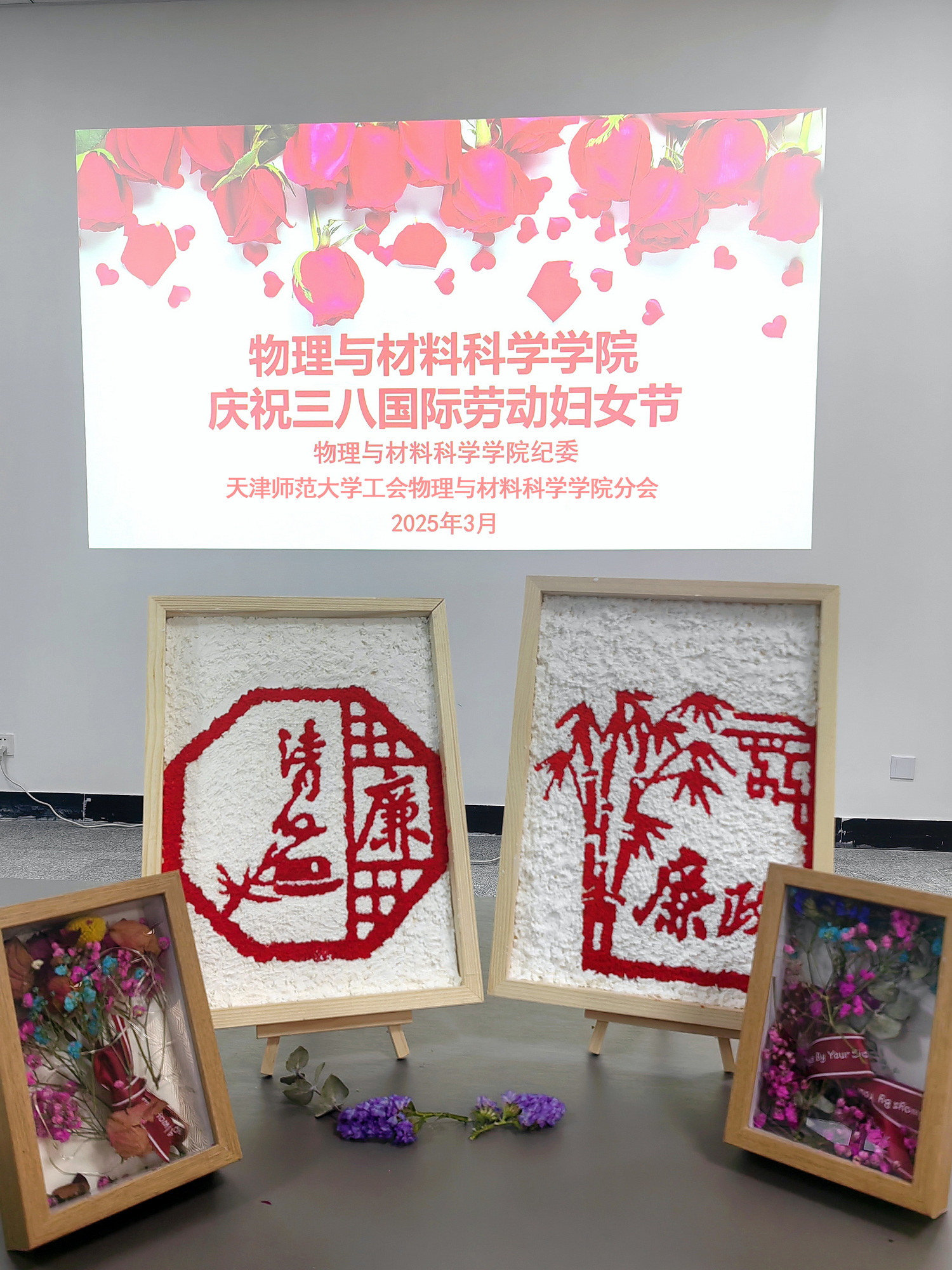 在第115个“三八”国际劳动妇女节来临之际,为深入贯彻清正廉洁、坚守初心的精神,营造风清气正的学院环境,丰富学院女教职工精神生活,3月6日中午,beat365亚洲版官网纪委联合学院工会分会共同开展“展巾帼风采,沐廉政清风”国际劳动妇女节主题活动,捻纸为画,共庆女神佳节,润物无声,同沐廉政清风。学院领导班子及全体女教职工齐聚一堂,以“纸浆画”“干花画”为载体,将廉政文化融入艺术创作,在指尖流转间涵养清风正气,共度别具意义的节日时光。